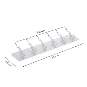 KISTYL-self-adhesive transparent wall hook strip is the perfect solution for organizing items without damaging your walls. Featuring 6 strong hooks on a 35cm x 6.5cm strip, it is ideal for homes, kitchens, bathrooms, and offices. Designed with heavy-duty transparent adhesive, it can withstand water, weight, and time.